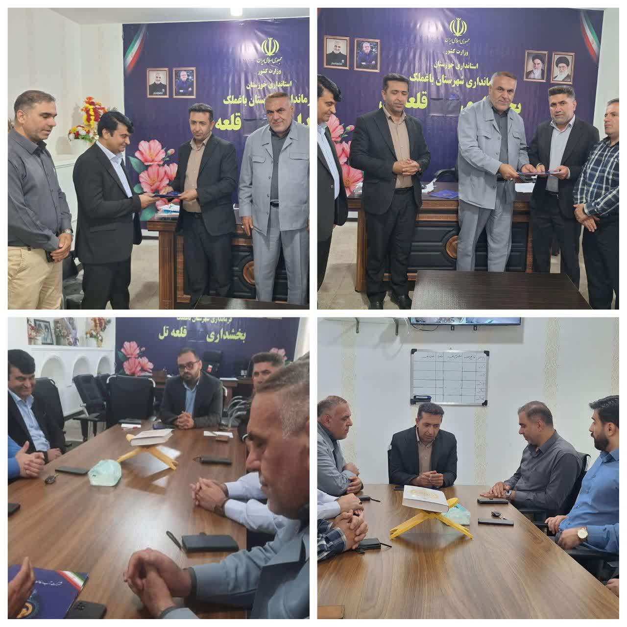 مراسم معارفه وی با حضور دکترسروستانی بخشدار قلعه تل،دکترحسینی مدیرآبفا منطقه ایذه ،مهندس احمدی مدیر اداره آبفاشهرستان،مهندس ملایی حراست آبفا شهرستان و همکاران و مسئولین گرامی و در شهرستان برگزار شد.