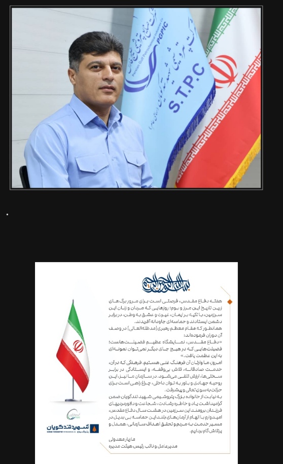 مازیار معدولی مدیرعامل پتروشیمی شهید تندگویان با صدور پیامی آغاز هفته دفاع مقدس را تبریک گفت.